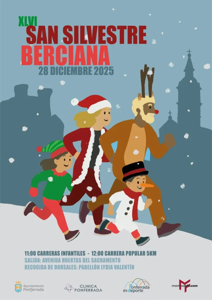 Ponferrada celebrará el domingo 28 de diciembre de 2025 una nueva edición de la San Silvestre Berciana, que alcanza ya su XLVI convocatoria y mantiene su carácter popular y familiar, con pruebas para distintas edades a lo largo de la mañana.