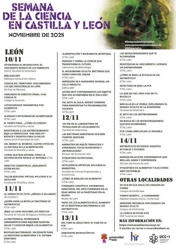 El calendario completo, con la distribución por días y localizaciones, puede consultarse en el portal oficial de la Semana de la Ciencia en Castilla y León y en la web de noticias de la Universidad de León, donde se irán actualizando los avisos de inscripción y las actividades abiertas al público.